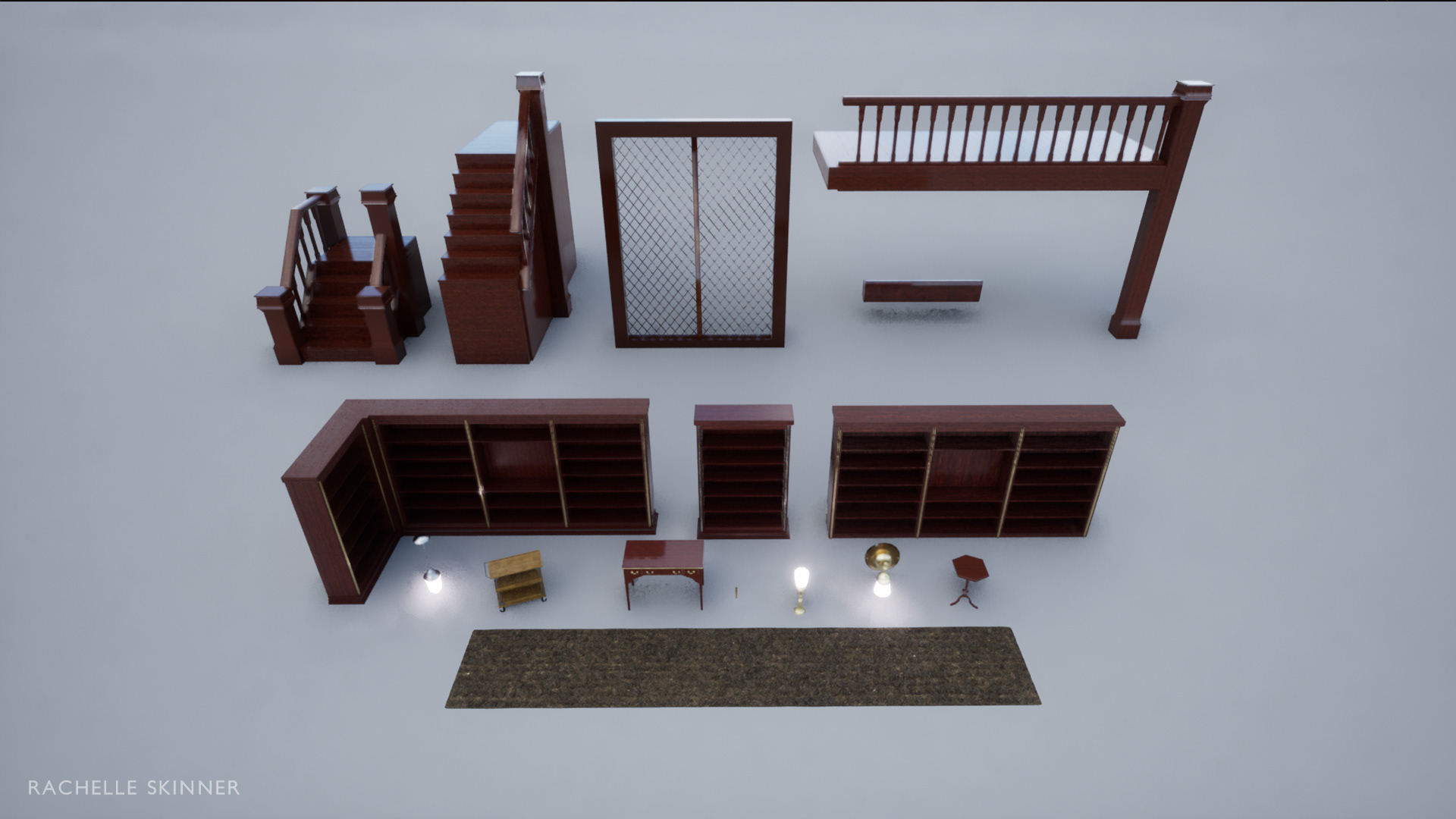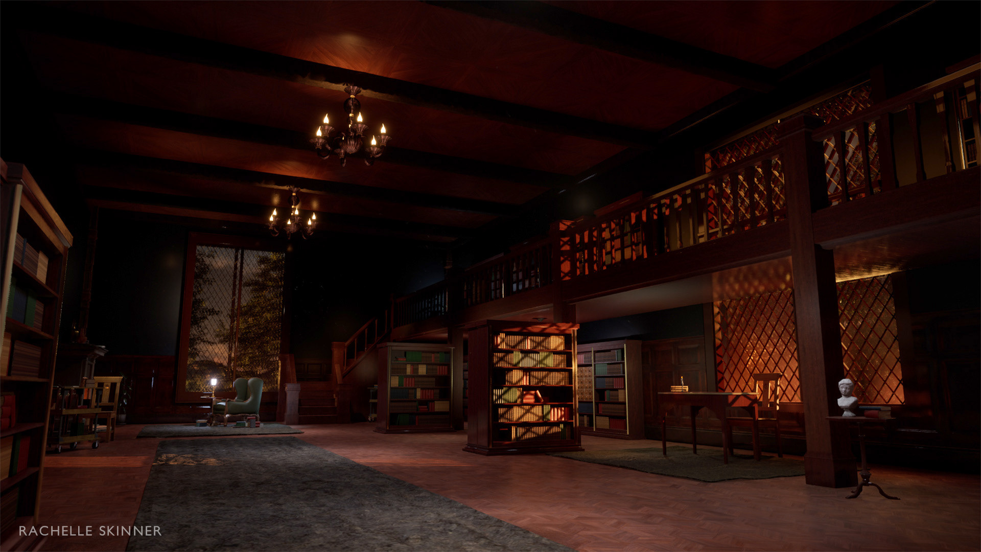 This was my first project in Unreal Engine. Learning from the ground up, I worked with a mentor while I made this scene. It's loosely based on Edwardian libraries.